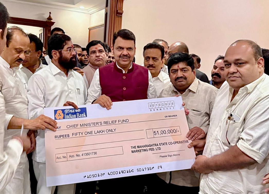 राज्यातील अतिवृष्टीग्रस्त शेतकऱ्यांच्या मदतीसाठी सामाजिक बांधिलकी जपत दि महाराष्ट्र स्टेट को-ऑपरेटिव्ह मार्केटिंग फेडरेशन लिमिटेड, महाराष्ट्र राज्य, मुंबई यांच्या वतीने मुख्यमंत्री सहाय्यता निधीमध्ये तब्बल ₹51,00,000 (एकावन्न लाख रुपये) इतक्या देणगीचा धनादेश मुख्यमंत्री देवेंद्र फडणवीस यांना मुंबई येथे सुपूर्त करण्यात आला.