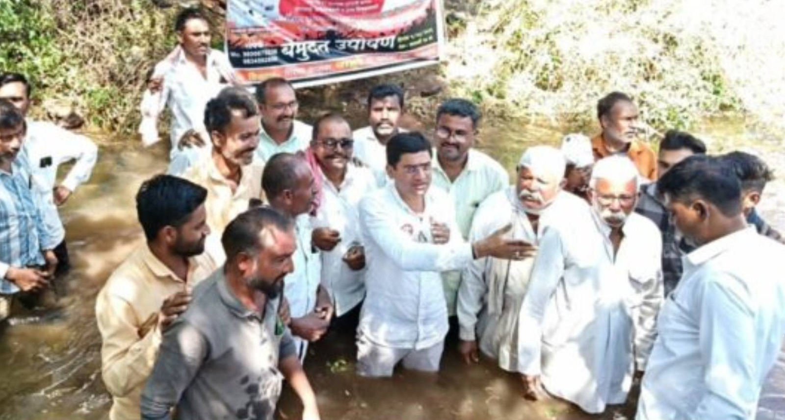 एका महिन्यात कालवा सुरू करण्याची हमी; पारोळा तालुक्यातील बाहुटे येथे पाण्यात उतरून शेतकऱ्यांचे बेमुदत आंदोलन