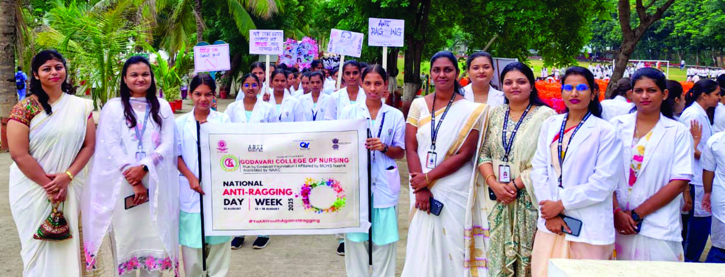 जळगाव : गोदावरी नर्सिंग कॉलेज, जळगाव येथे दिनांक १२ ते १८ ऑगस्ट २०२५ दरम्यान युथ अगेंस्ट रॅगींग या घोषवाक्यांतर्गत आणि युनिफॉर्म ऑफ हिलींग नॉट हींग या शीर्षकासह अँटी-रॅगिंग सप्ताह विविध उपक्रमांनी साजरा करण्यात आला.
