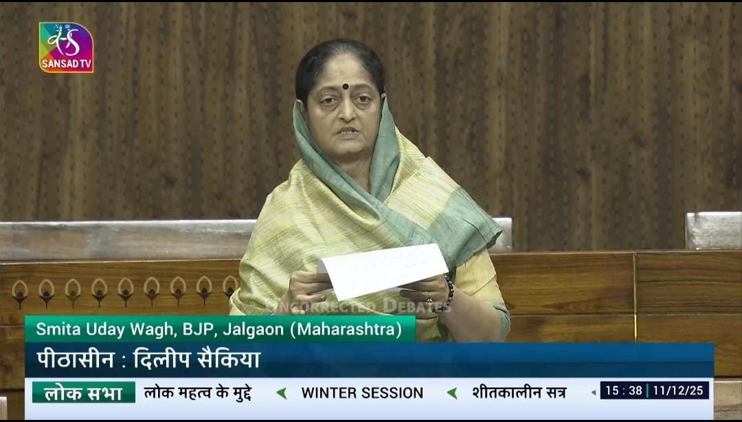 जळगांव : जळगाव लोकसभा मतदारसंघाच्या खासदार स्मिताताई वाघ यांनी आज केंद्र सरकारच्या हिवाळी अधिवेशनात जळगाव जिल्ह्यातील लाखो केळी उत्पादक शेतकऱ्यांचा अत्यंत महत्त्वाचा मुद्दा अत्यंत प्रभावीपणे मांडून संपूर्ण सभागृहाचे लक्ष वेधून घेतले. देशातील सर्वात मोठा केळी उत्पादक जिल्हा म्हणून जळगावचा गौरव असला तरी गेल्या काही वर्षांत अत्यंत अनिश्चित हवामान, अनियमित पाऊस, ओलावृष्टि, सलग उच्च आर्द्रता आणि अचानक होणारे वातावरणीय बदल यामुळे केळी पिकांचे प्रचंड नुकसान होत आहे. या नुकसानाला सध्याच्या फळस्वर-हवामान आधारित विमा योजनेत पुरेसा कव्हरेज नसल्याची बाब स्मिताताईंनी ठामपणे समोर आणली.