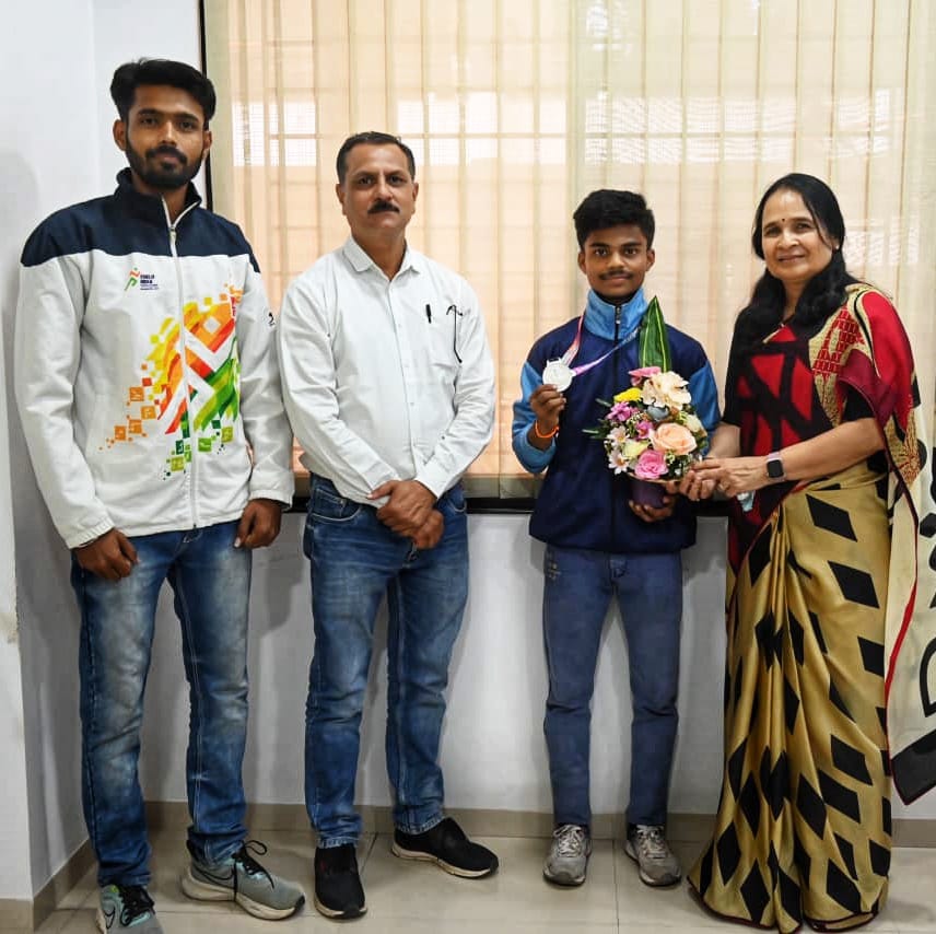 यावेळी खेळाडूंचा सत्कार करतांना जी. एच. रायसोनी इस्टीट्युटच्या संचालिका प्रा. डॉ. प्रीती अग्रवाल यांनी मार्गदर्शन करतांना नमूद केले कि, रायसोनी महाविद्यालयातील विद्यार्थी केवळ शैक्षणिक नव्हे तर क्रीडा क्षेत्रातही चमकत आहेत ही अत्यंत अभिमानाची बाब आहे. सातत्य, शिस्त आणि क्रीडाप्रेम या गुणांमुळेच आज विद्यार्थी राष्ट्रीय स्तरावर यश मिळवत आहेत. महाविद्यालय त्यांना आवश्यक सुविधा, मार्गदर्शन आणि प्रेरणा देत राहील, असे मत प्रा. डॉ. प्रीती अग्रवाल यांनी यावेळी व्यक्त केले. त्यांनी सर्व खेळाडूंचे अभिनंदन करून पुढील स्पर्धांसाठी शुभेच्छा दिल्या. या कार्यक्रमास अकॅडमिक डीन प्रा. डॉ. संजय शेखावत व क्रीडा संचालक सागर सोनवणे उपस्थित होते.