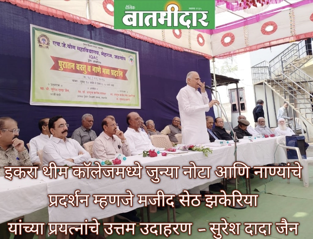 इकरा एज्युकेशन सोसायटी द्वारा संचलीत एच.जे.थीम कला व विज्ञान महाविद्यालय मेहरुण जळगावतर्फे जुन्या नोटा व नाण्यांचे प्रदर्शन भरविण्यात आले. या कार्यक्रमाच्या अध्यक्षस्थानी डॉ.अब्दुल करीम सालार होते.