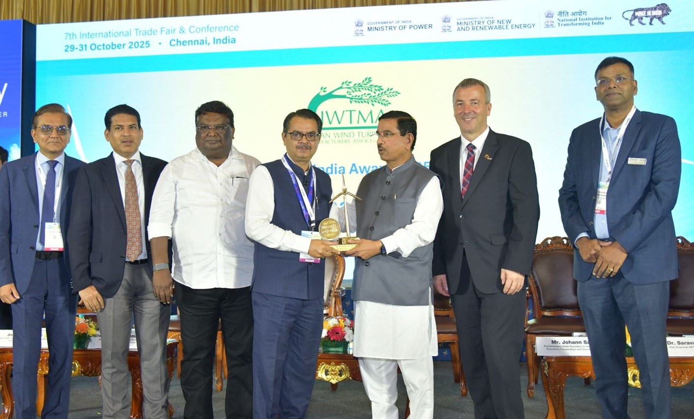 चेन्नई ट्रेड सेंटरमध्ये आयोजित तीन दिवसीय आंतरराष्ट्रीय परिषदेत गुरुवारी (दि. ३०) केंद्रीय नवीन व नवीकरणीय मंत्री मा. श्री. प्रल्हाद जोशी यांच्याहस्ते महावितरणला ‘विंड इंडिया-२०२५’ पुरस्काराने गौरविण्यात आले. महावितरणच्या वतीने मुख्य अभियंता श्री. ज्ञानेश कुलकर्णी (नवीकरणीय ऊर्जा, मुंबई) यांनी हा पुरस्कार स्वीकारला. यावेळी ऊर्जामंत्री श्री. एस. एस. शिवशंकर (तामिळनाडू) व के. जे. जॉर्ज (केरळ), केंद्रीय सचिव श्री. संतोषकुमार सारंगी व सहसचिव श्री. राजेश कुलहारी (नवीन व नवीकरणीय ऊर्जा), श्री. जोहान साथॉफ (संसदीय राज्य सचिव, जर्मनी), आयोजन समिती व असोसिएशनचे अध्यक्ष श्री. गिरीश तांती यांची उपस्थिती होती.