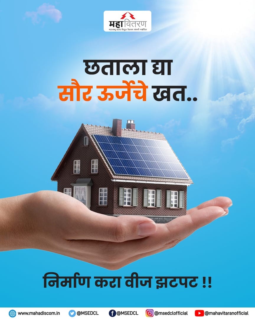 पीएम-सूर्यघर योजनेत सौर ऊर्जा संच बसवणाऱ्या ग्राहकांना जवळपास मोफत वीज मिळत आहे. शासनाकडून अनुदान मिळणाऱ्या या योजनेचा घरगुती ग्राहक व निवासी संकुलांनी लाभ घ्यावा. महावितरणकडून यासंबंधीच्या सर्व प्रकिया ऑनलाईन व सुलभ करण्यात आली आहे.