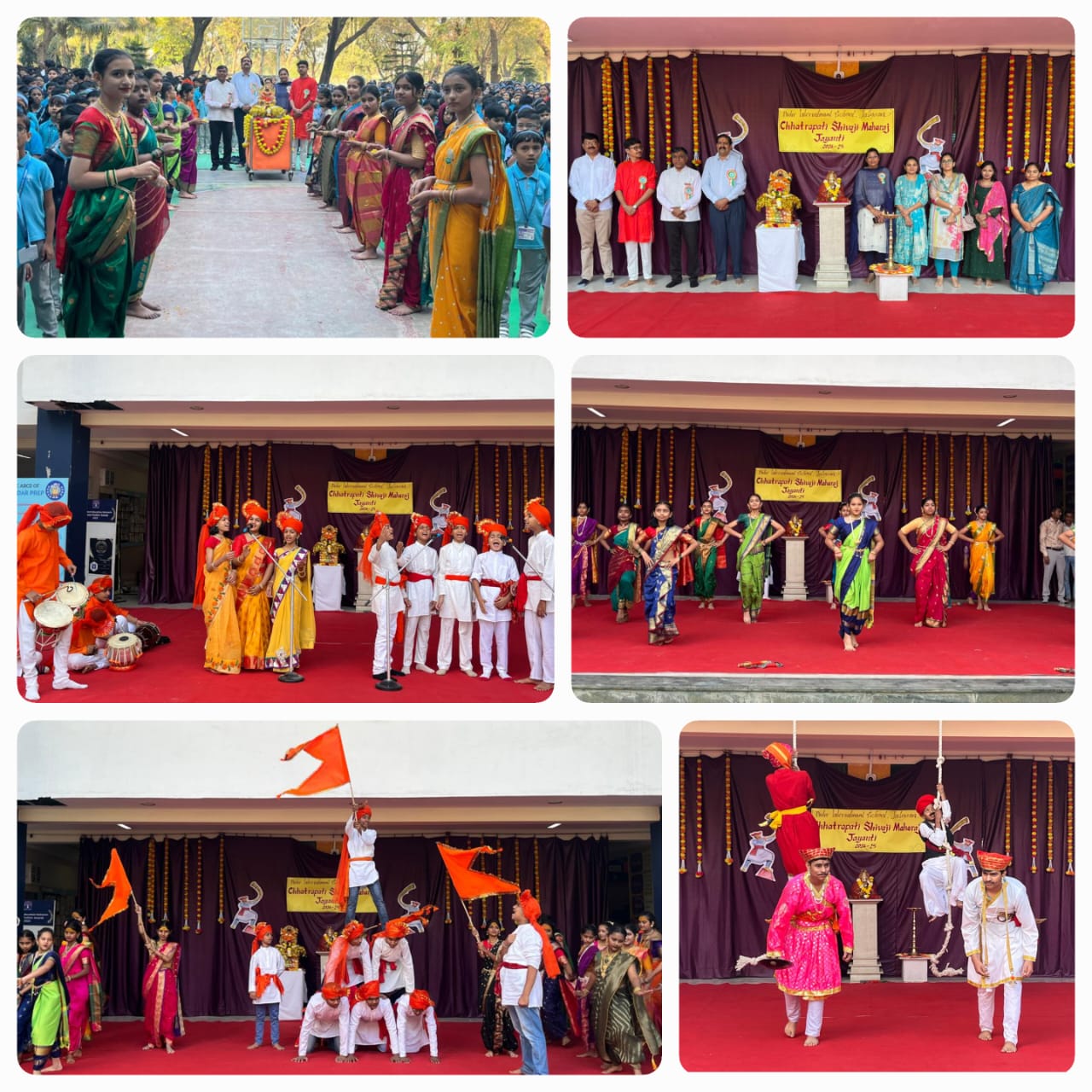 इयत्ता नववीचा विद्यार्थी निर्भय शिंपी याने आपले भाषणातून स्वराज्य प्राप्तीचा इतिहास वर्णिला.माजी विद्यार्थी संकेत गांगुर्डे यांनी आपल्या भाषणातून शिवकालीन घटनांचे वर्णन केले.कार्यक्रमाप्रसंगी शाळेचे मुख्याध्यापक श्री. गोकुळ महाजन यांनी छत्रपती शिवाजी महाराजांच्या जीवन चरित्राची गाथा वर्णिली.कार्यक्रमाप्रसंगी शाळेचे मुख्याध्यापक उप मुख्याध्यापक श्री. दीपक भावसार , मुख्याध्यापिका सौ. उमा वाघ, शाळेचे व्यवस्थापन जितेंद्र कापडे, समन्वयक, विद्यार्थी, पालक आणि शिक्षक शिक्षकेतर कर्मचारी यांची मोठ्या संख्येने उपस्थित होती.कार्यक्रमाच्या सूत्र संचालनाची जबाबदारी अक्षदा घुले, पृथ्वीराज हजारे, जसीता पाटील, भुषण पाटील आणि मोहम्मद तल्हा या विद्यार्थ्यांनी पार पाडली.