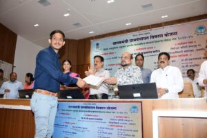 या प्रसंगी पालकमंत्री गुलाबराव पाटील, मंत्री गिरीश महाजन, मंत्री संजय सावकारे व मान्यवरांच्या हस्ते जिल्हाभरातील ग्रामपंचायतचे सरपंच तसेच ग्रामसेवक यांना 45 ग्रामपंचायत भवन , 130 स्मशानभूमी बांधकाम, स्मशानभूमी पोहोच रस्ते अश्या विविध विकास कामांच्या योजनांच्या आदेश वाटप करण्यात आले. तसेच राज्य शासनाच्या सरळ सेवा भरती अंतर्गत पात्र ठरलेल्या 21 कंत्राटी ग्रामसेवकांना यावेळी मान्यवरांच्या हस्ते नियुक्ती पत्र देण्यात आले. यावेळी जिल्हा भारातून सरपंच, उपसरपंच व ग्रा.पं. सदस्य, महिला बचत गटाच्या सदस्या व पदाधिकारी मोठ्या संख्येने उपस्थित होते.