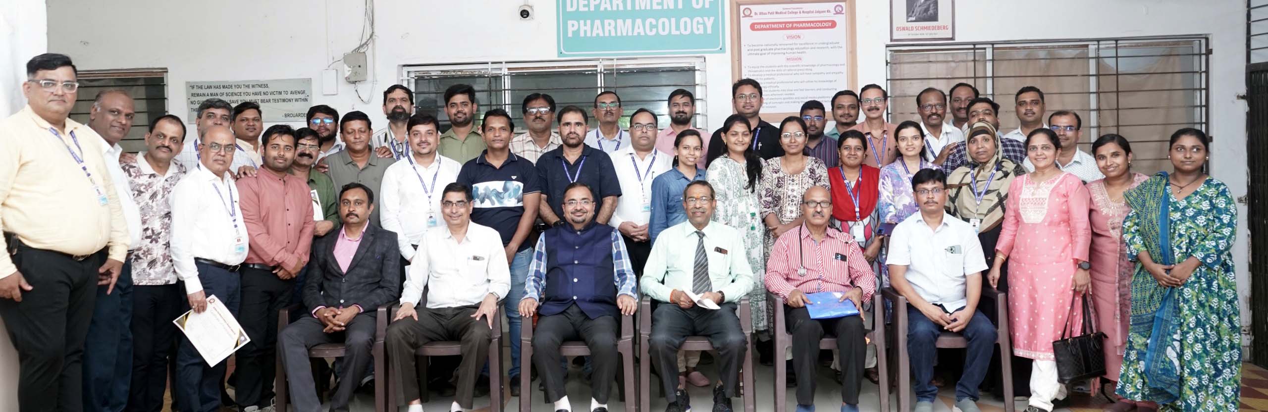 जळगाव – डॉ. उल्हास पाटील वैद्यकीय महाविद्यालयामध्ये औषध दक्षता सप्ताहनिमीत्त औषध दक्षता – सामान्य चिकित्सकांमध्ये जागृती या विषयावर आधारित एकदिवसीय कार्यशाळा उत्साहात संपन्न झाली. दि. १७ सप्टेंबर २०२५ रोजी नॅशनल फार्माकोव्हिजिलन्स वीक’ म्हणजेच राष्ट्रीय औषध दक्षता सप्ताह. हा एक आठवडाभर चालणारा कार्यक्रम असतो, ज्यामध्ये औषध घेतल्यानंतर होणारे दुष्परिणाम किंवा इतर कोणत्याही औषधांशी संबंधित समस्यांबद्दल जनजागृती केली जाते. या एक दिवशीय कार्यशाळेमध्ये मुख्य उद्देश औषधांच्या सुरक्षिततेबद्दल समाजात जागरूकता वाढवणे,औषधाच्या दुष्परिणामाबद्दल किंवा अपायकारक परिणामाबद्दल जागृती निर्माण करणे हा होता.