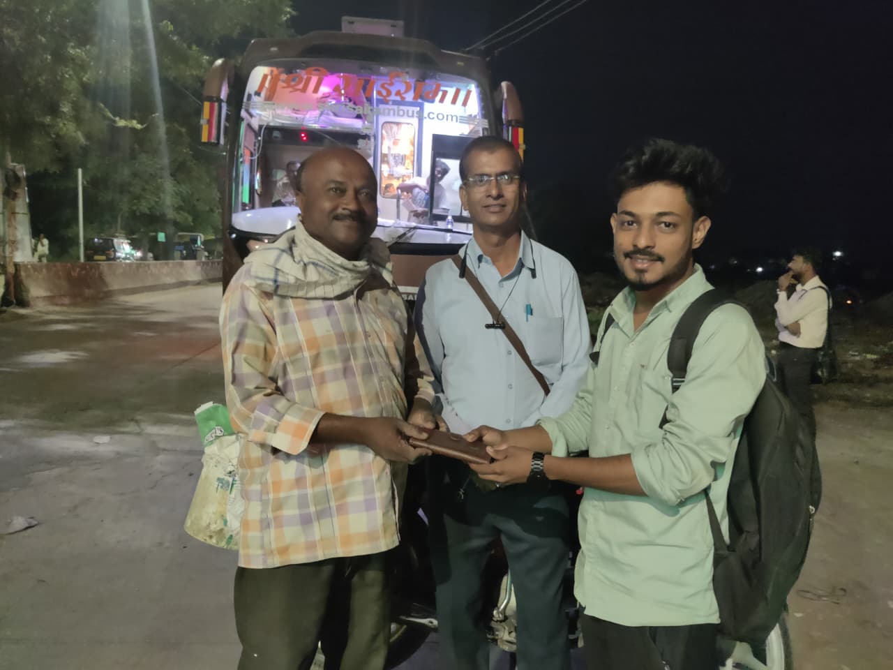 कॉल उचलणाऱ्या एका तरुणाने प्रामाणिकपणे मोबाईल सापडल्याचे सांगितले. आर. डी. पाटील सरांनी त्याच्याशी विश्वासाने बोलून त्याला साईराम लक्झरी जवळ येण्यास सांगितले. काही वेळातच तो तरुण तेथे येऊन मोबाईल सुरक्षित परत केला.