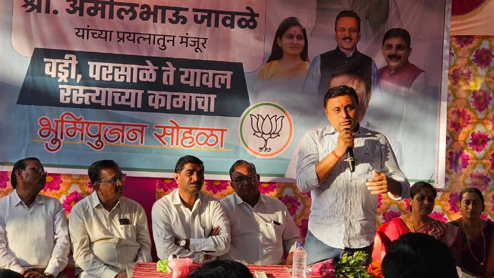 या रस्त्याच्या कामासाठी आमदार मा. अमोलभाऊ जावळे यांनी शासन दरबारी सातत्याने पाठपुरावा केला. त्यांच्या अथक प्रयत्नांमुळे आवश्यक निधी मंजूर झाला असून आज भूमिपूजनाच्या माध्यमातून या विकासकामाला प्रत्यक्ष सुरुवात झाली आहे.