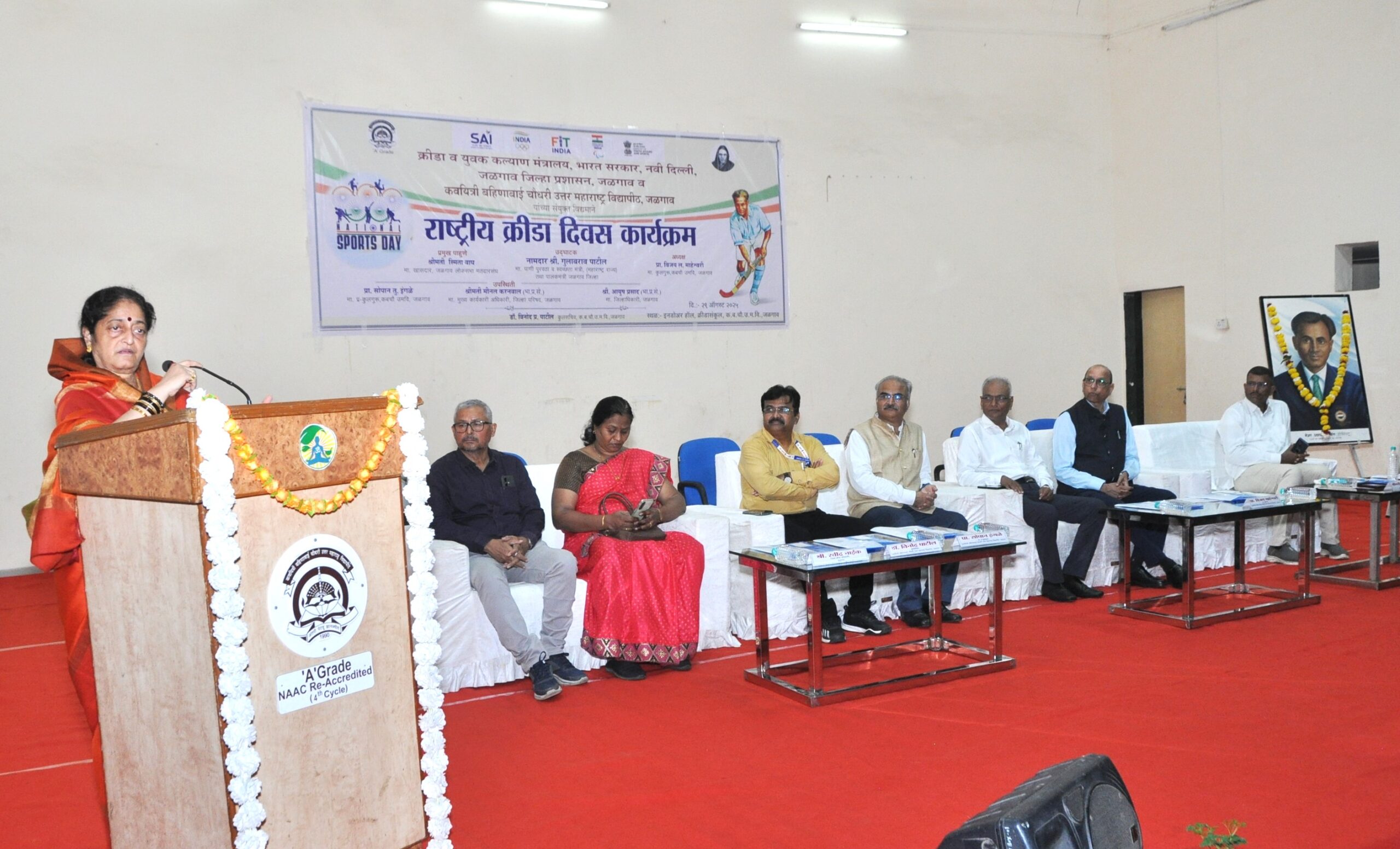 क्रीडा व युवा कल्याण मंत्रालय (भारत सरकार), जिल्हा प्रशासन जळगाव व कवयित्री बहिणाबाई चौधरी उत्तर महाराष्ट्र विद्यापीठ यांच्या संयुक्त विद्यमाने आज शुक्रवार दि. २९ ऑगस्ट रोजी सकाळी ९.०० वाजता आयोजित राष्ट्रीय क्रीडा दिनाचा कार्यक्रमाचे उद्घाटन खासदार स्मिता वाघ यांच्या हस्ते संपन्न झाले त्यावेळी त्या बोलत होत्या.