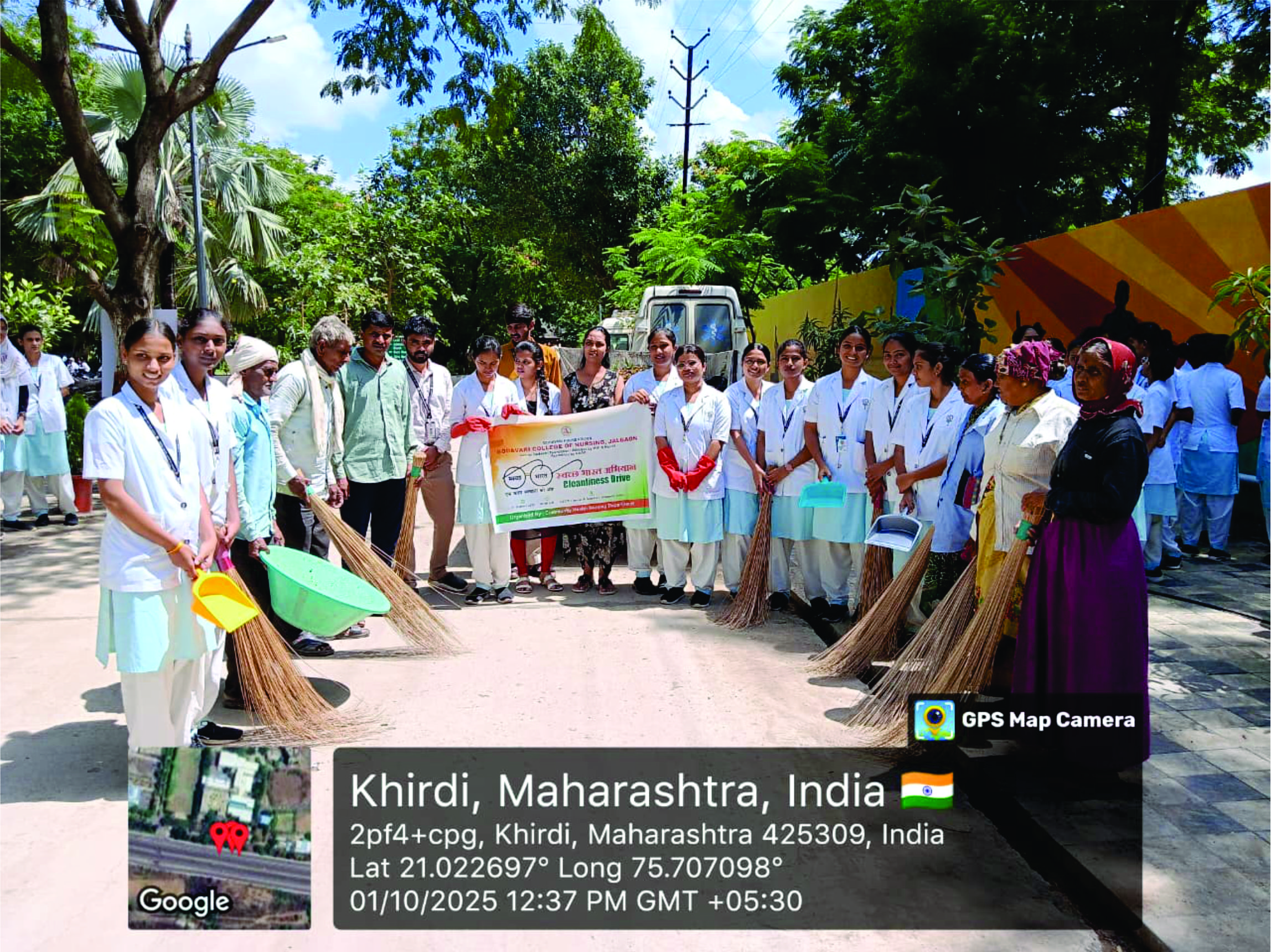 जळगाव गोदावरी कॉलेज ऑफ नर्सिंग, जळगाव येथे स्वच्छ भारत अभियान निमित्त स्वच्छता उपक्रम राबविण्यात आला. या उपक्रमाचे आयोजन कम्युनिटी हेल्थ नर्सिंग विभाग तर्फे करण्यात आले होते.