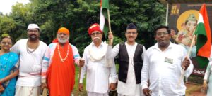 दै. बातमीदार । १८ ऑगस्ट २०२२ । जळगाव येथील रोटरी जळगाव मिडटाऊन व रायझिंग रायडर्स यांच्यातर्फे स्वातंत्र्याच्या अमृत महोत्सवानिमित्त शोभायात्रा काढण्यात आली. त्यात मिडटाऊनचे श्रीरंग पाटील यांनी लोकमान्य टिळकांची तर आर.एन. कुळकर्णी यांनी स्वातंत्र्यवीर सावरकरांची भूमिका सादर केली. भास्कर जुनागडे यांनी संत गाडगेबाबांच्या भूमिकेद्वारे संदेश दिला.