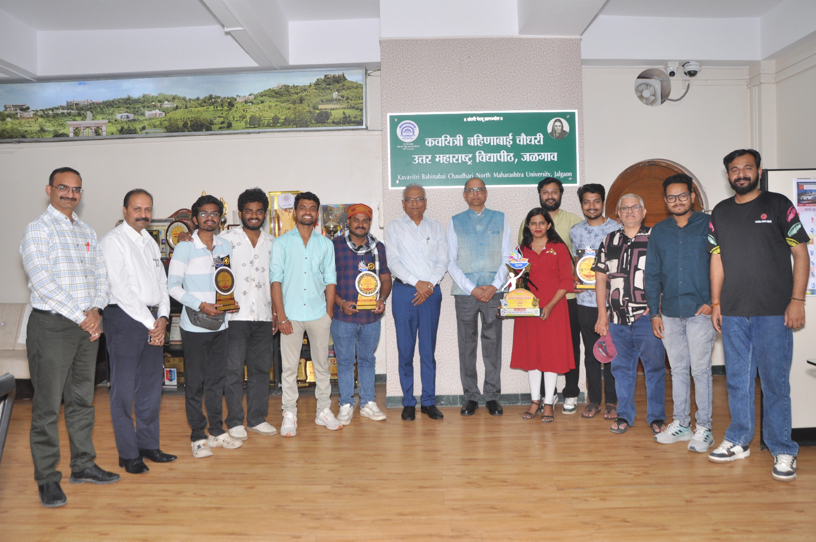 नंदुरबार येथे आयोजित अत्यंत प्रतिष्ठेच्या राज्यस्तरीय “हस्ती-जिभाऊ करंडक” एकांकिका स्पर्धेत कवयित्री बहिणाबाई चौधरी उत्तर महाराष्ट्र विद्यापीठाच्या नाट्यशास्त्र विभागाने घवघवीत यश संपादन केले आहे. विद्यापीठाच्या विद्यार्थ्यांनी सादर केलेल्या “ऑलमोस्ट यू डाय” या एकांकिकेने आपल्या प्रभावी सादरीकरणाने प्रेक्षकांची आणि परीक्षकांची मने जिंकत प्रथम क्रमांकाचा करंडक पटकावला.