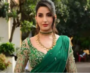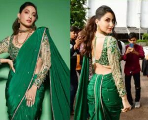 पारंपारिक लुकमध्ये सुंदर दिसण्यासाठी; नोरा फतेहीचा “हा” हिरवा साडी लुक पहा